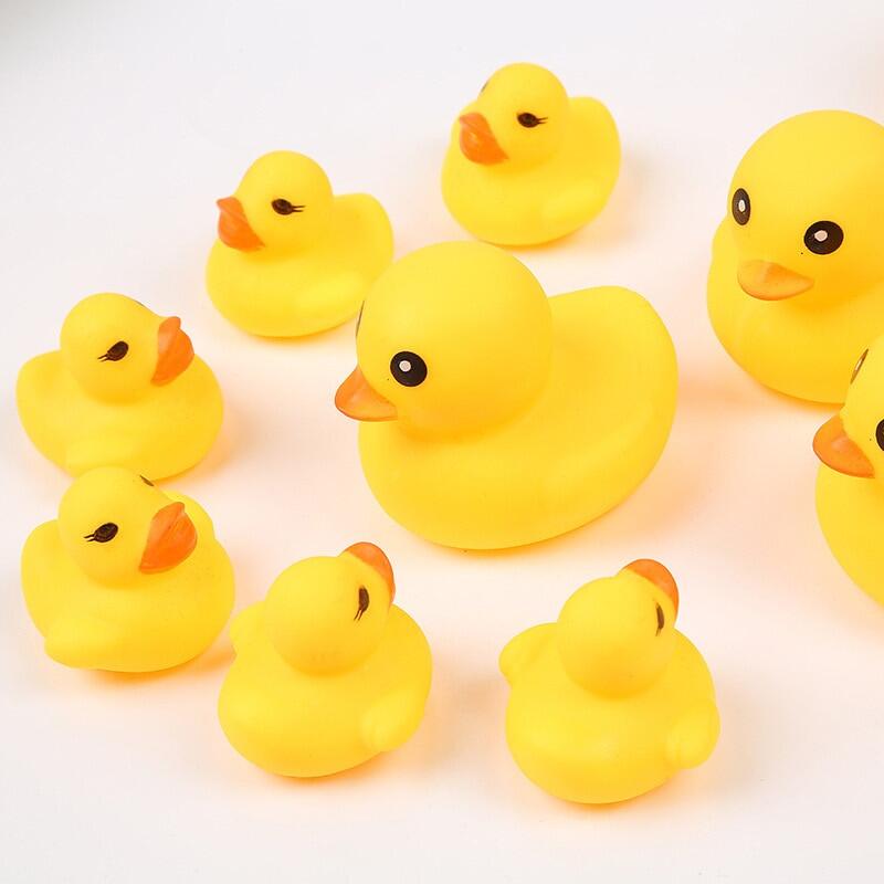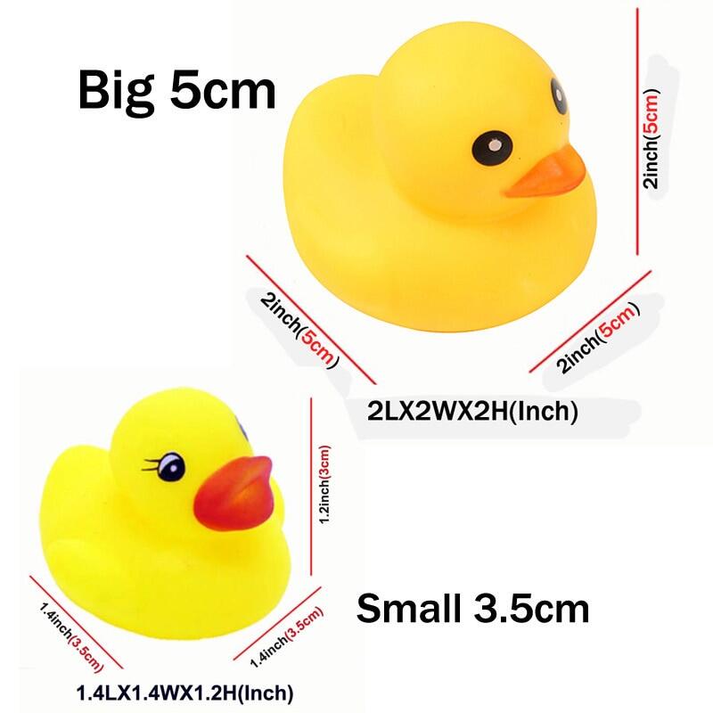Material: RubberColor: YellowSize: 2L x 2W x 2H(Inch)/1.4 L×1.4W×1.2 H (Inches)Durable,safe and non-toxic material,squeakyThe colors may have different as the difference display,please understandPackage Include:1set Duck Toys
