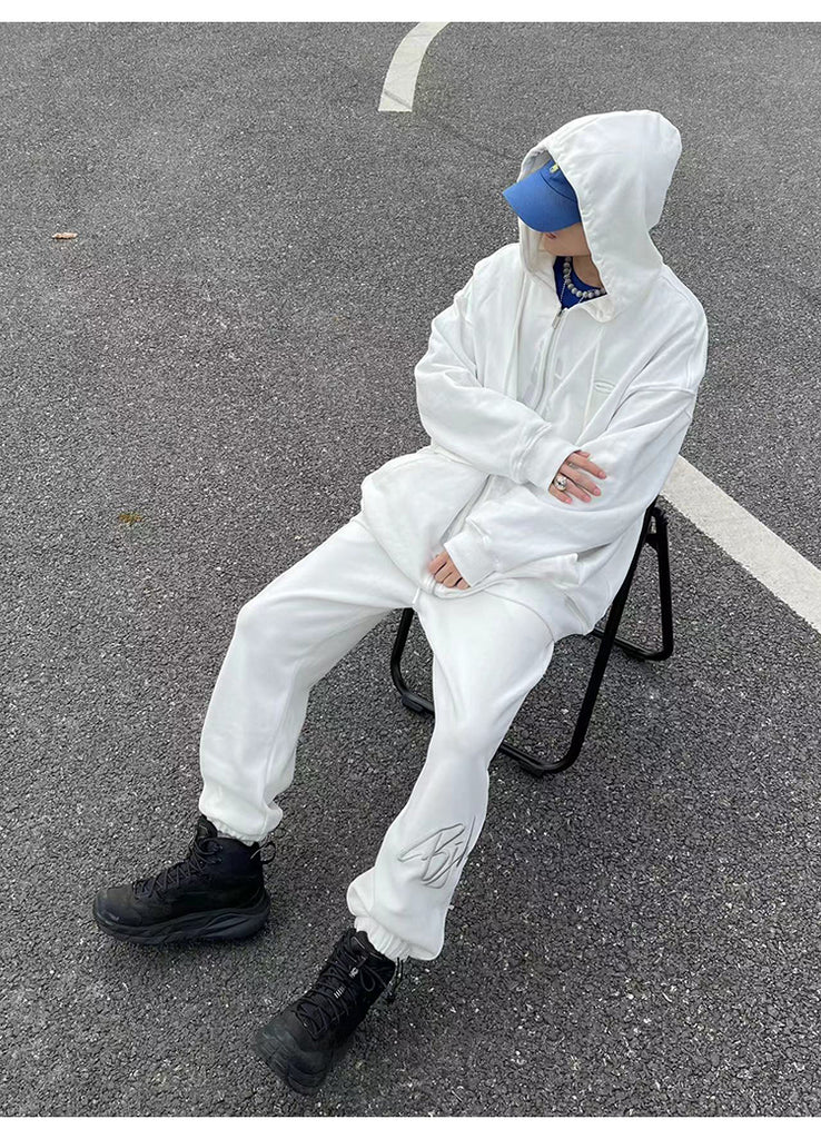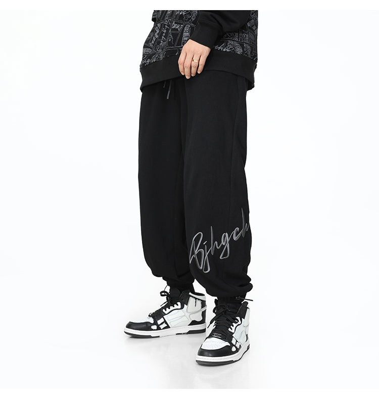 BJHG cotton sweatpants, drawstring at elasticized waistband, three-pocket styling, bungee-style drawstrings at elasticized cuffs, embroidered logo sewn at front to back.