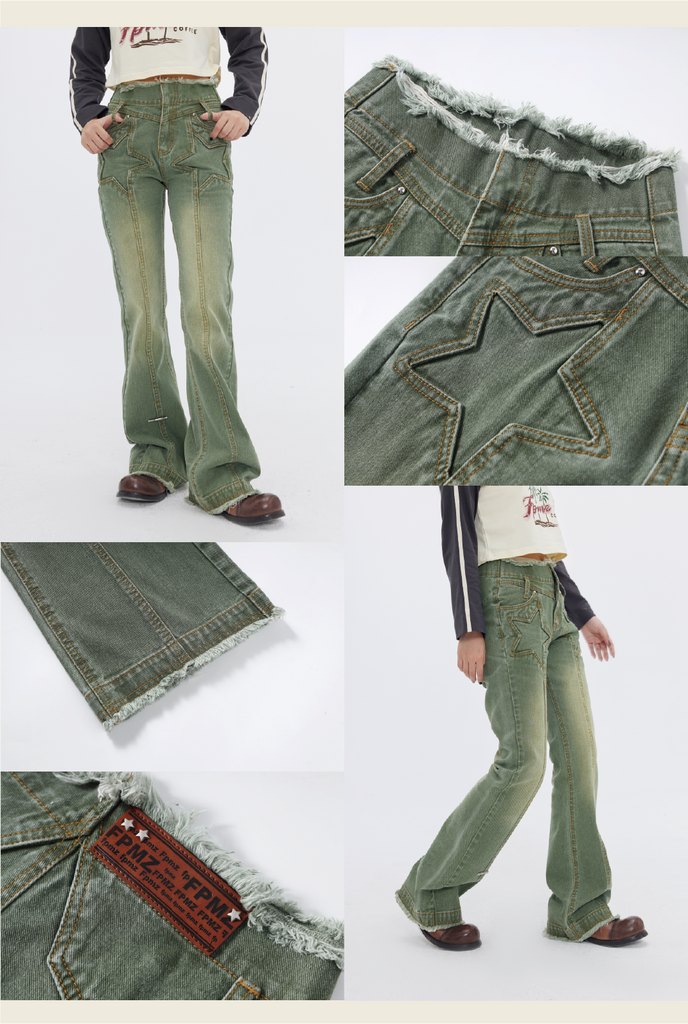 FPMZ Star-Stitched Faded Denim Jeans