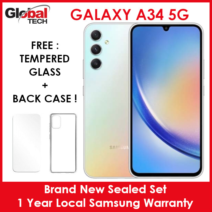 Samsung Galaxy A34 5G 128GB Rom + 8GB Ram / 1 Year Local Samsung Warranty (FREE : TEMPERED GLASS + BACK CASE)