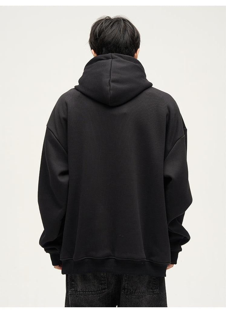 Heavy Cotton Hoodie, rib knit cuffs and hem, kangaroo pocket at waist, drawstrings with metal hardware, panel cut hood, stand-up collar layered under hood, zip-up collar with metal hardware, metal logo on chest.