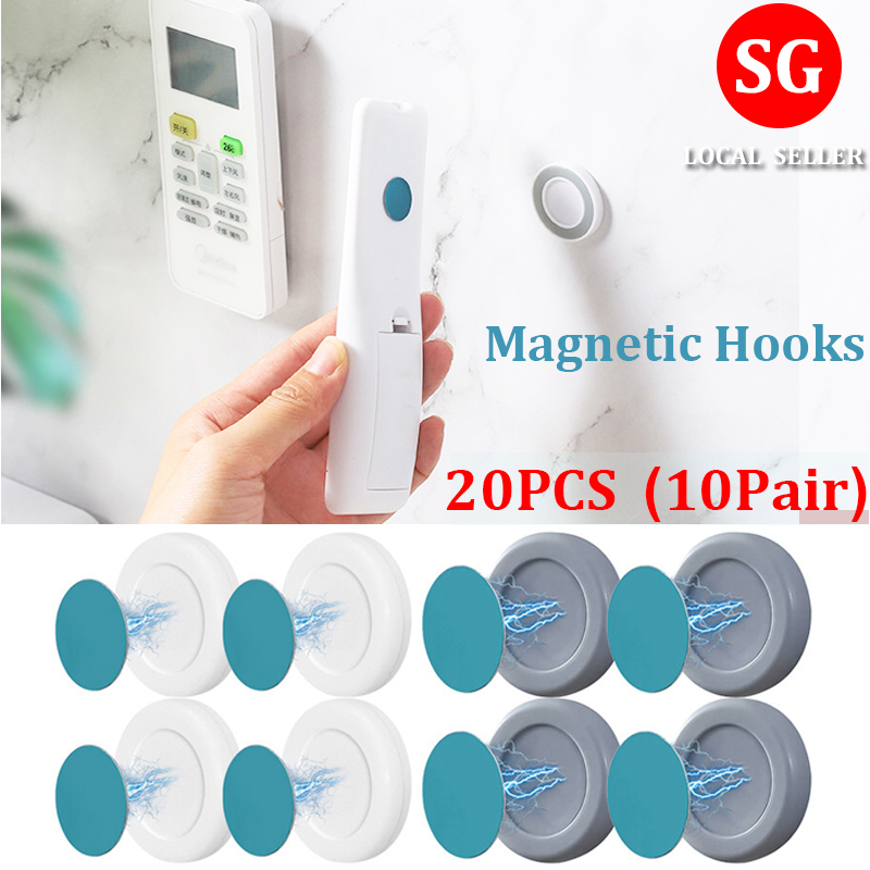 10Pairs Magnetic Hooks Wall Mount Strong Magnet Holder Hook for Fridge Sticker Remote Control Storage Holder Cabinet Home Organizer Hook Circular magnetic suction socket fixed artifact hole-free bedro