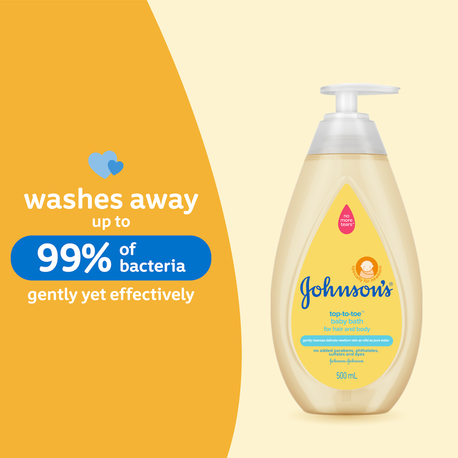 Johnson's® Top-To-Toe™ hair & body baby bath gently cleanses delicate newborn skin and as mild as pure water. Newborn skin both absorbs and loses moisture faster than adult skin so it needs superior moisturizationBenefits of productGently cleanses delicate newborn skinBenefits of Ingredientscontains naturally-derived ingredientsHow-to-UseRemove seal to open. Wet body, gently lather & rinse.
