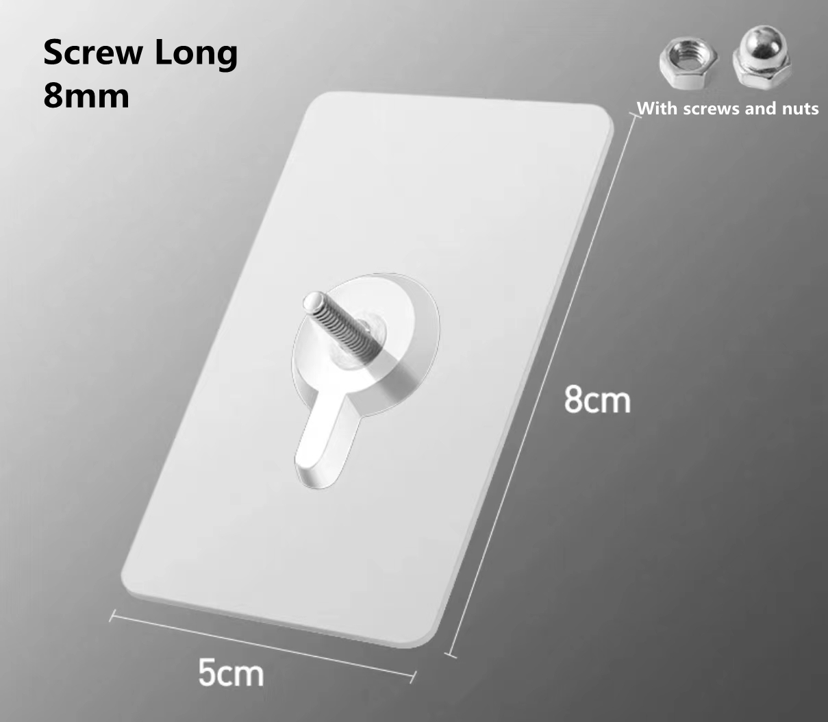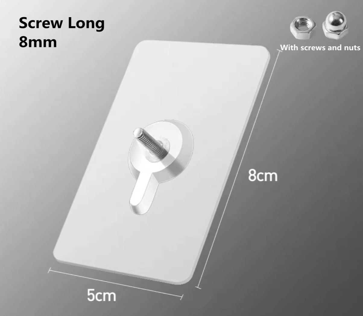 Specifications:Material: PVCSticker size: About 5cm * 8cm.Screw length: 6-16mm.Screw size: 4mm diameter, 6 different screw lengths to choose from (6mm,8mm, 10mm, 12mm, 14mm, 16mm)The correct screw length is recommended:6mm:suitable for brackets with a thickness of 1-3mm8mm: suitable for brackets with a thickness of 1-5mm10mm: suitable for brackets with a thickness of 1-7mm12mm: suitable for brackets with a thickness of 1-9mm14mm: suitable for brackets with a thickness of 1-11mm16mm: suitable for brackets with a thickness of 1-13mmHow to use?* 1. Clean the oil/dust/water on the surface and place the item on the wall to determine the position.* 2. Mark the position of the hole with a pen.* 3. Uncover the transparent protective film on the back of the patch.* 4. Install the center of the screw to the center of the mark to remove air from the hook.* 5. Paste the hooks one by one and check if the installation is safe.* 6. Wait an hour for better results.