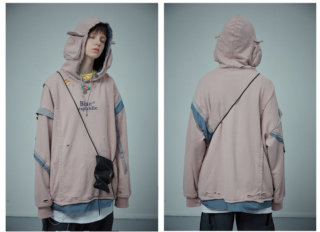 A SQUARE ROOT "Blue Republic" Layered Hoodie