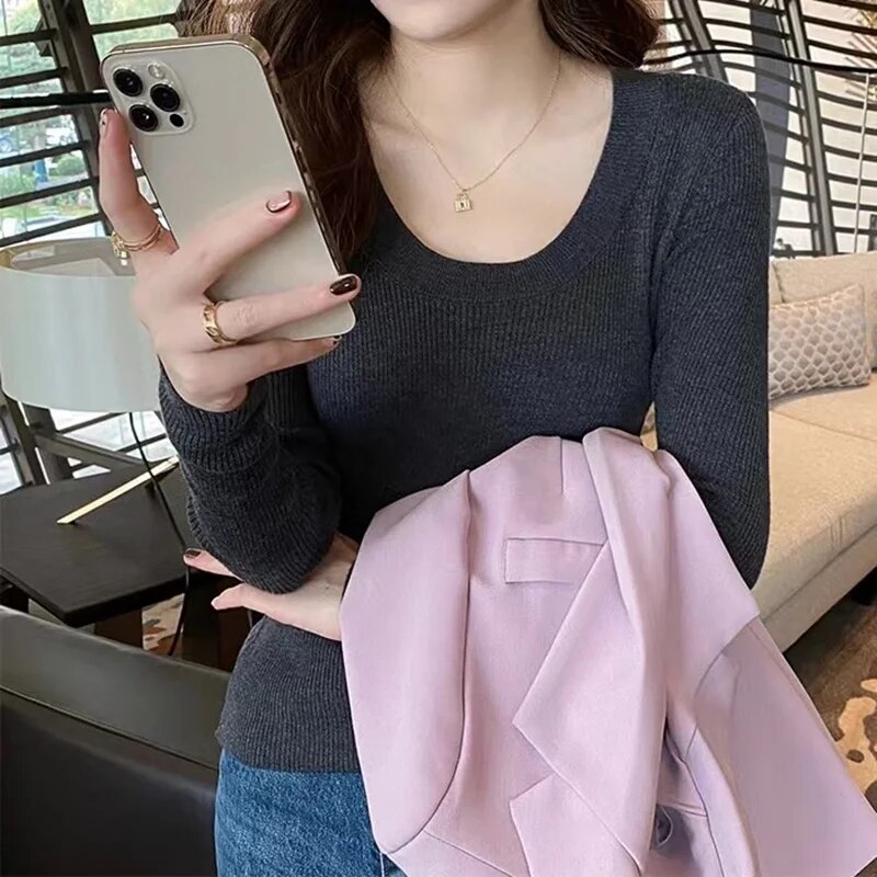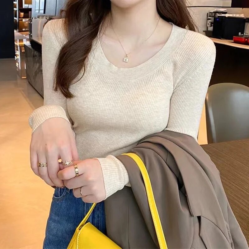 O-Neck Knit Pullover Sweater Woman Long Sleeve Top Casual Bottom Shirt Ladies Slim Jumpers For Women 2023 Autumn Winter Clothing