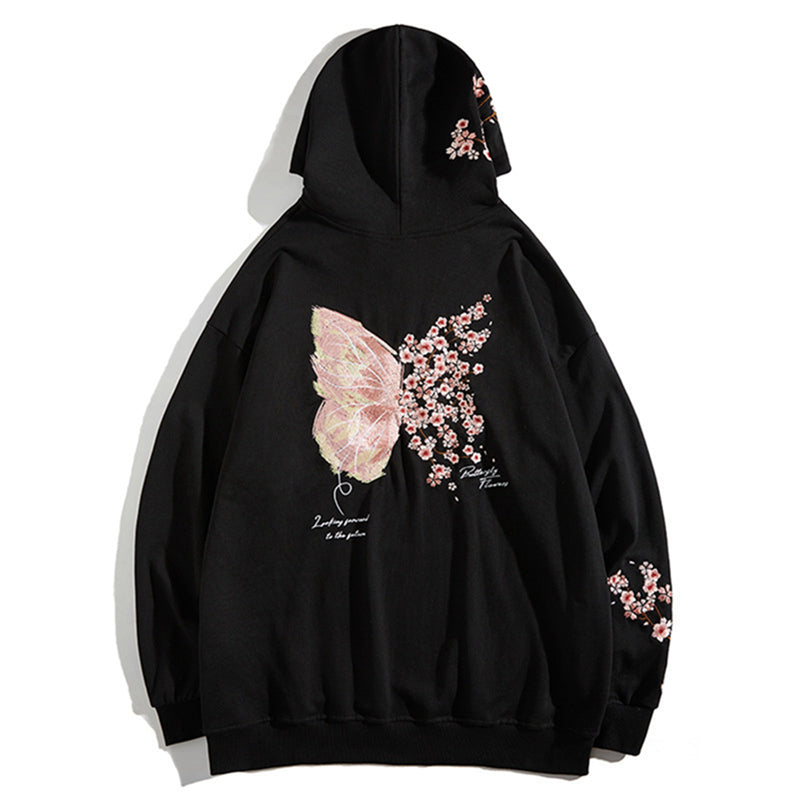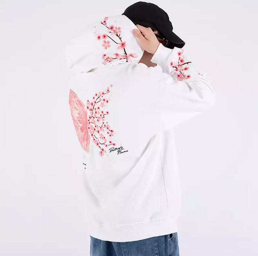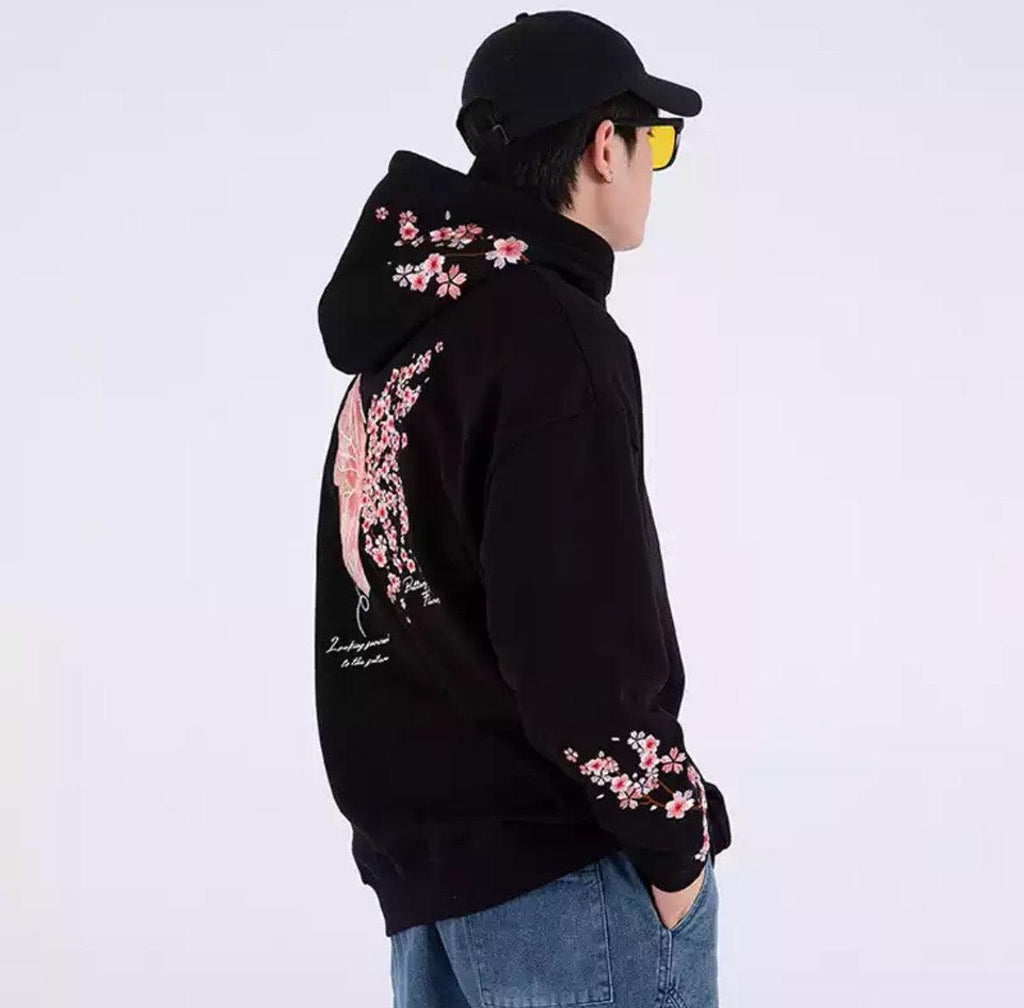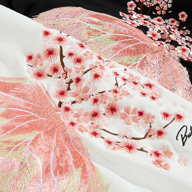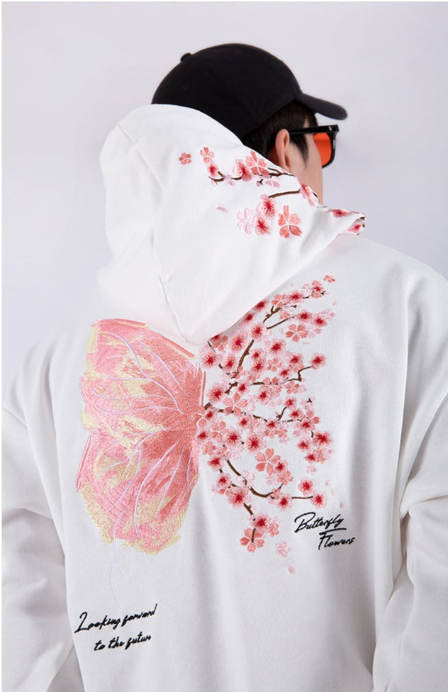 Cherry Blossom Butterfly Embroidered Hoodie