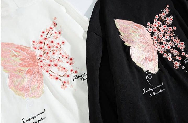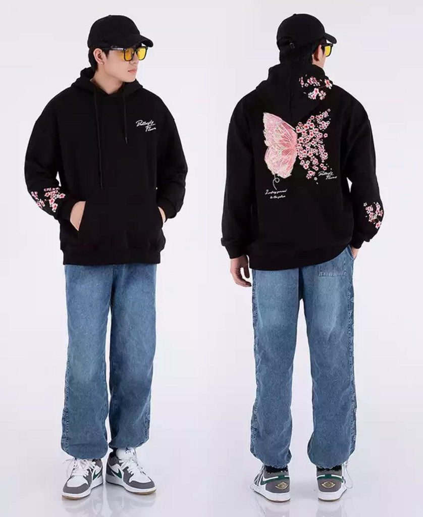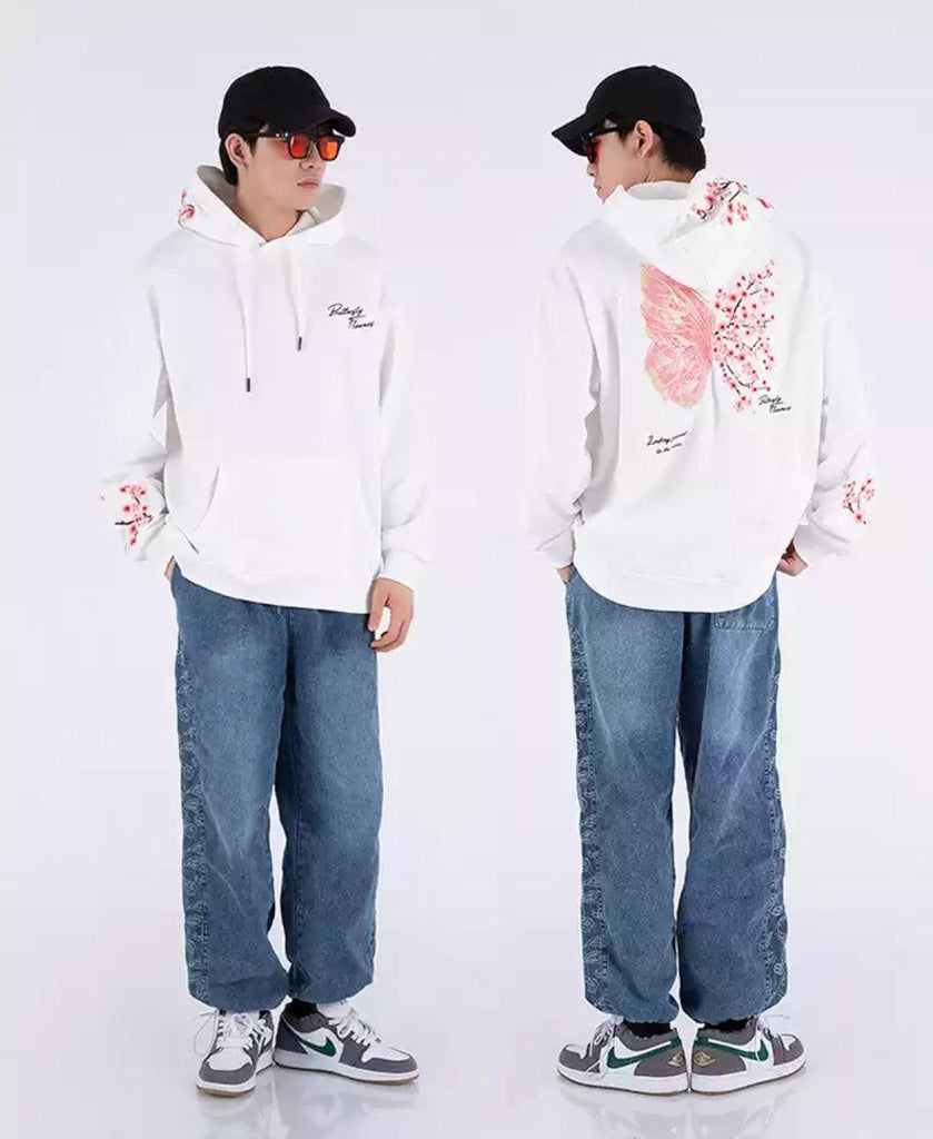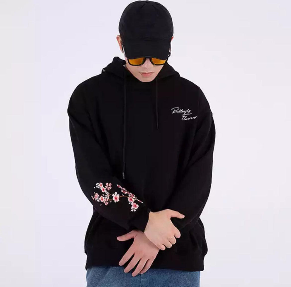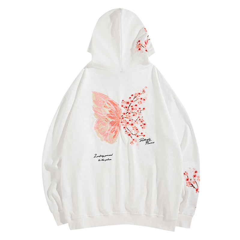 Cherry Blossom Butterfly Embroidered Hoodie