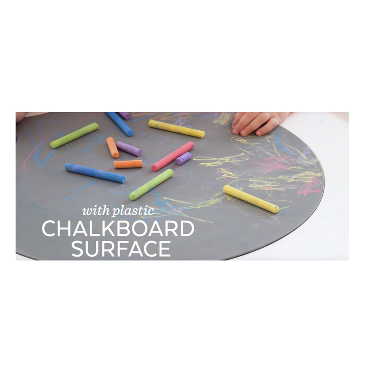 • Converts to a play table with smooth plastic chalkboard surface