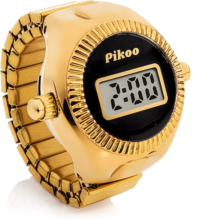 All finger watches are one size fits all featuring an elastic 24k gold plated band. Pikoo® Finger Watch contains Japanese made movement ensuring long term durability and splash resistance. Battery included
