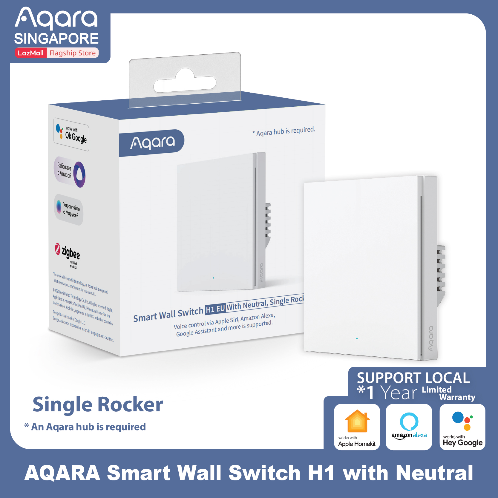 AQARA Smart Wall Switch H1 EU with (Single Gang / Rocker), Support Apple HomeKit, Alexa, Google, (Smart Light Switches)