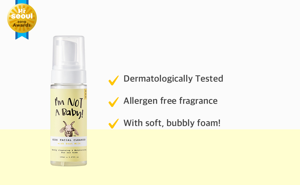 I’m NOT A baby! kids facial cleanser with goat Milk 150ml l Dermatologist Tested l Cruelty-free l Allergen-free fragrance l Goat Milk l Gentle for Kids Sensitive Skin