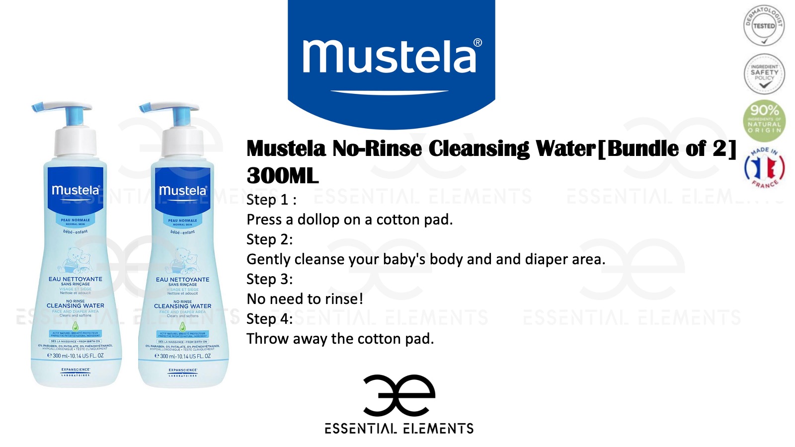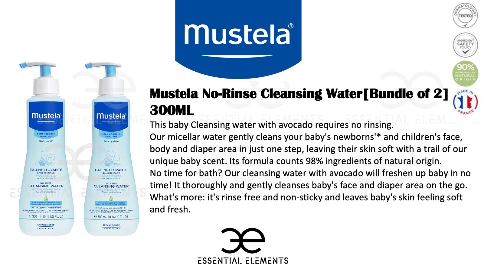 MUSTELA [BUNDLE OF 2] No-Rinse Cleansing Water 300ml | Baby and Maternity | Made in France | Micellar Water For NewBorn