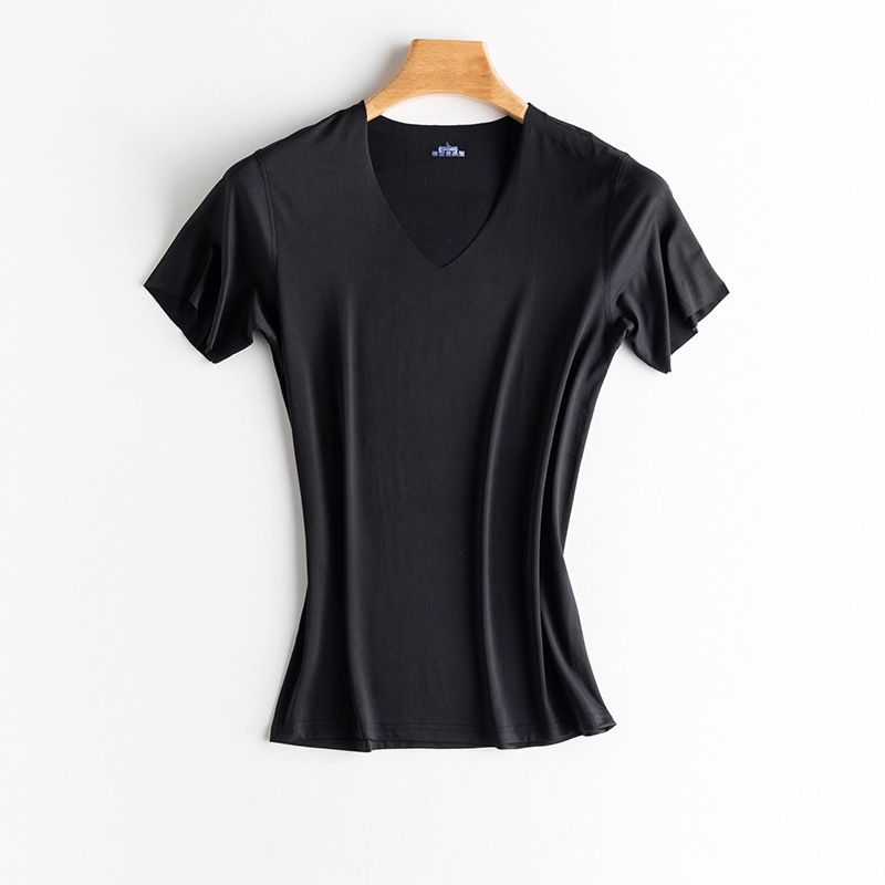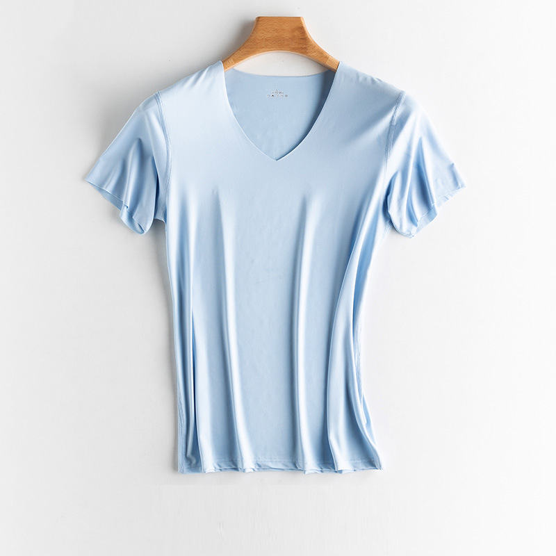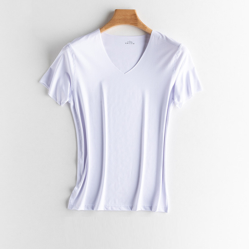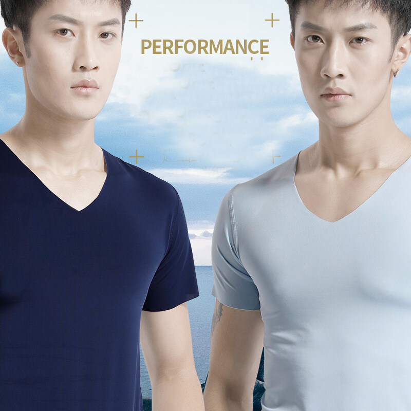 KYUSHUAD Ice Silk Seamless Short Sleeve T-shirt for Men V-neck Summer Thin Elastic Fit Top Mesh Quick Drying