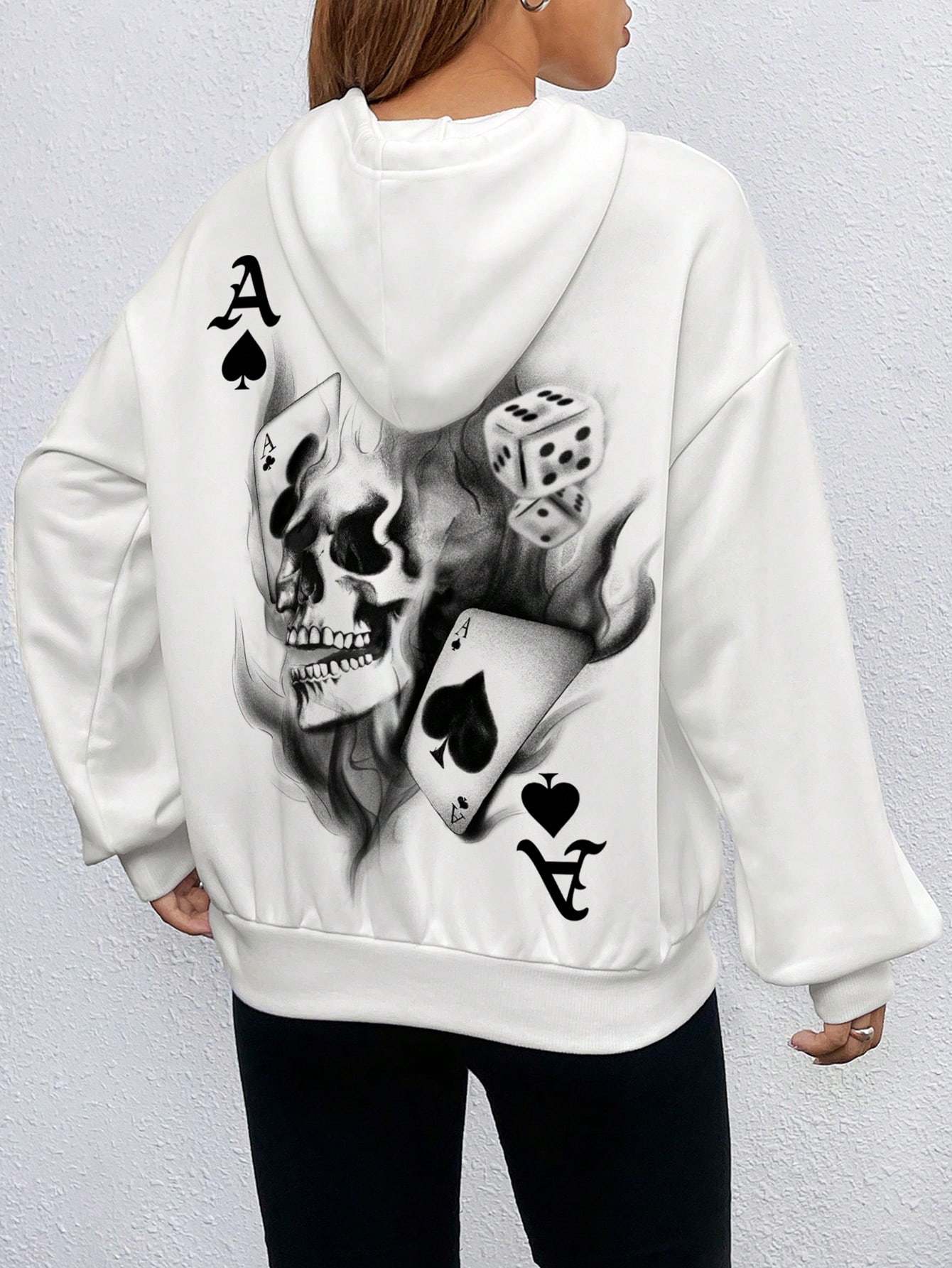 Coolane Women's Casual Skull & Flame Printed Hooded Loose Sweatshirt For Autumn & Winter