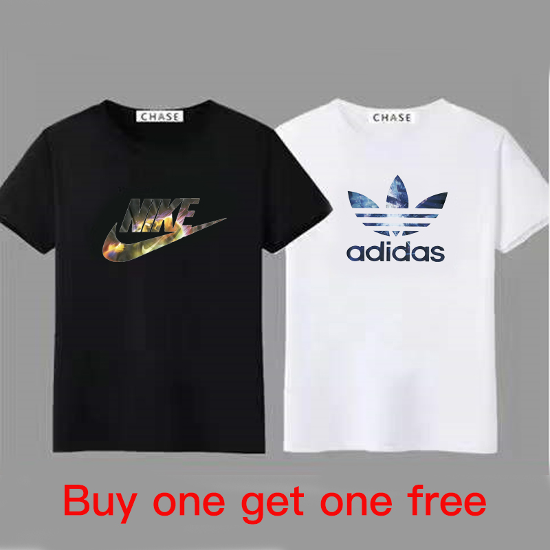 (Buy one, get two free) Super value all-match fashion T shirt all-match round neck Korean version loose large print half sleeve shirt