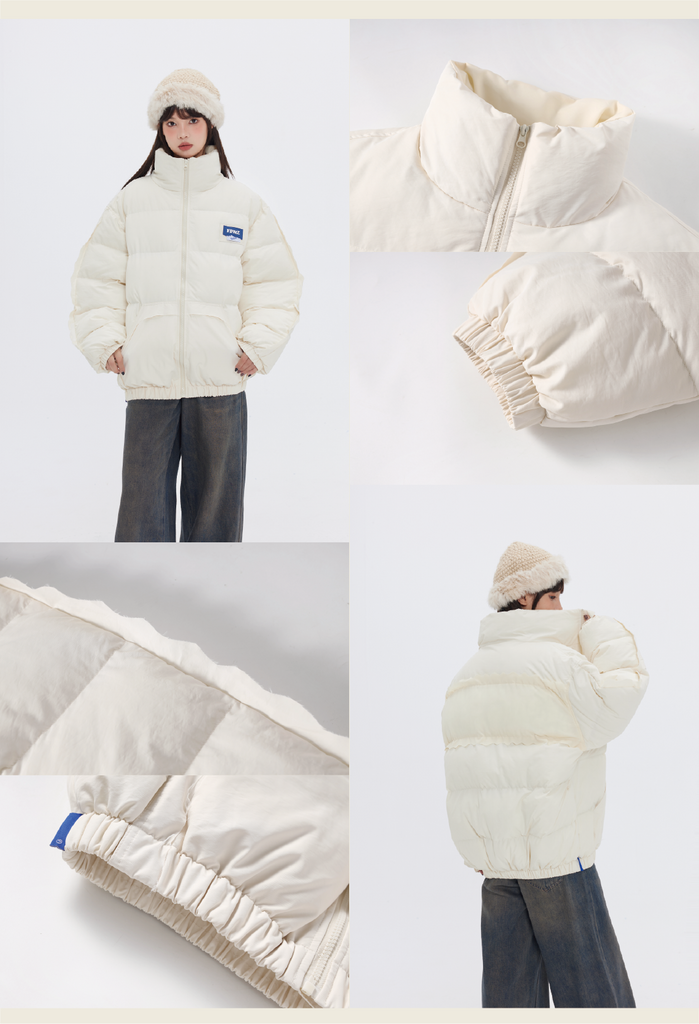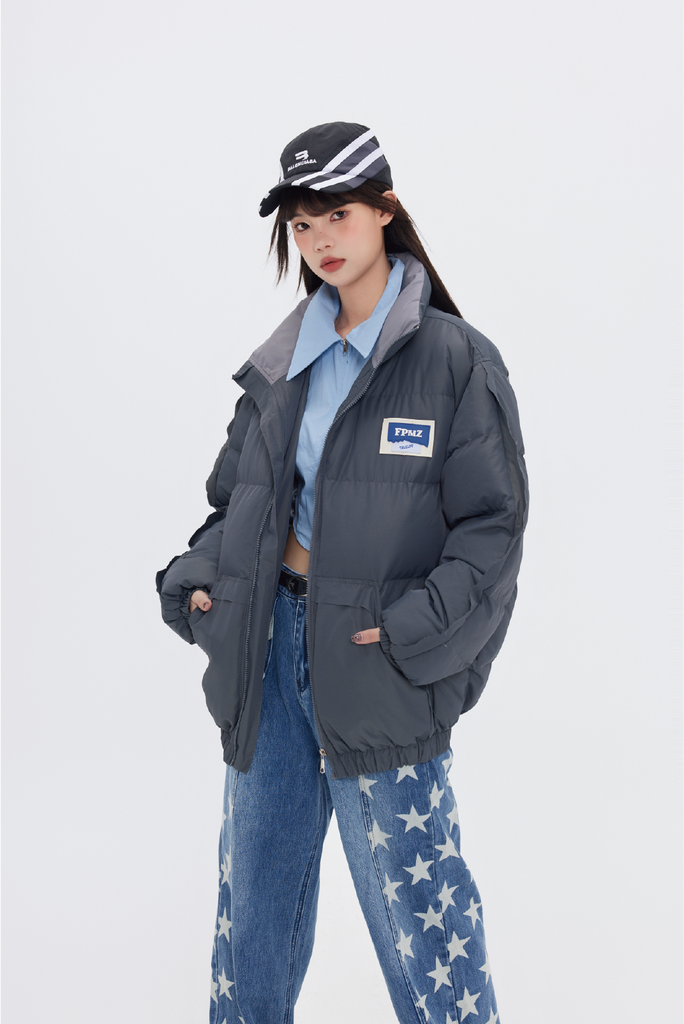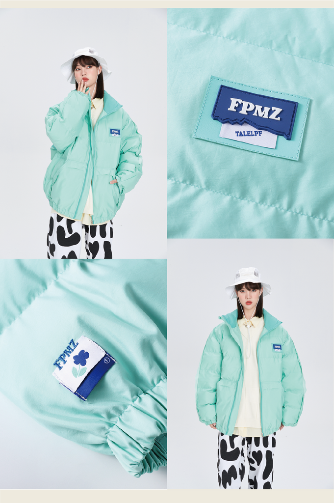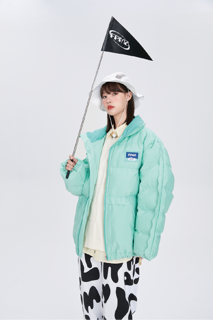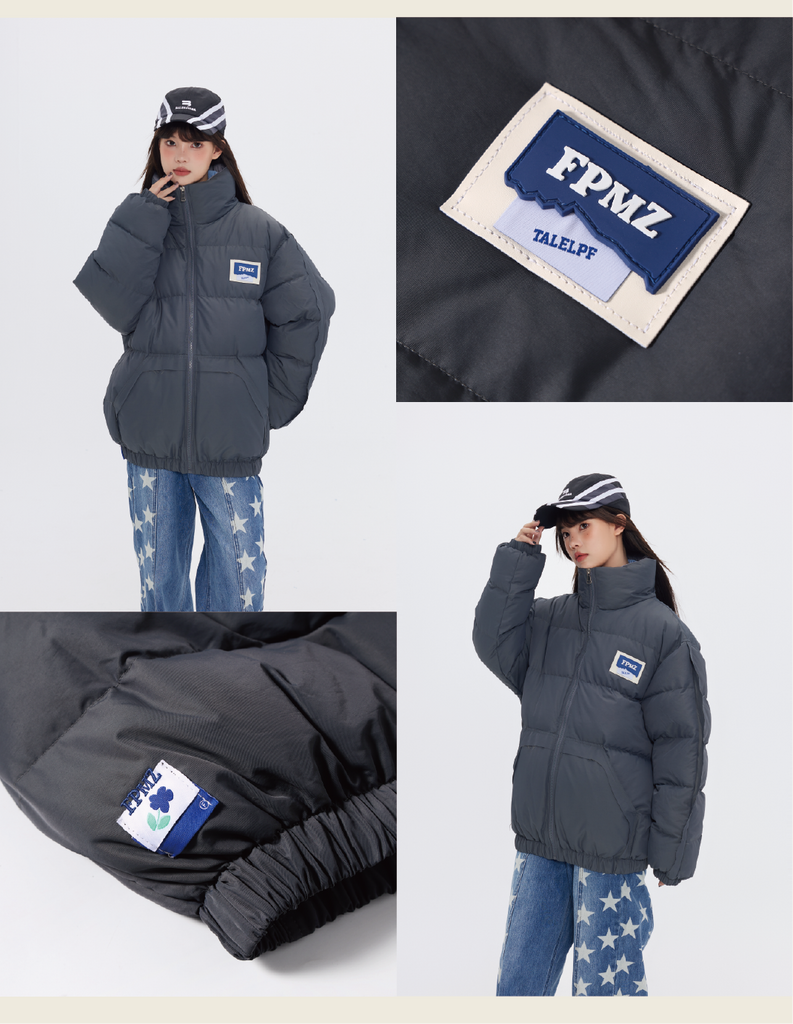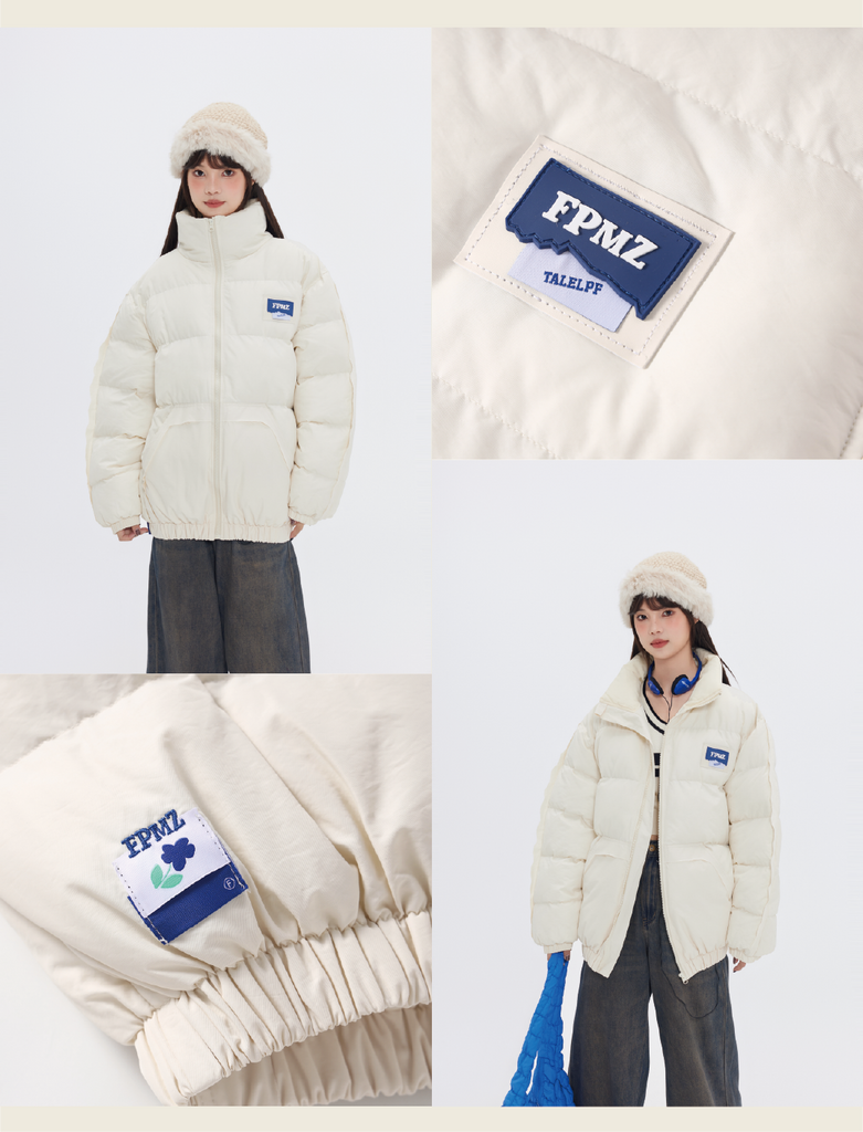 FPMZ cotton-blend puffer jacket, stand collar, zip closure, logo patch at chest and cuff, welt pockets, elasticized hem and cuffs, raw edge pattern at back, fully lined.