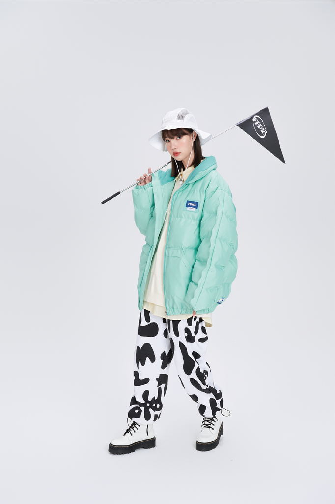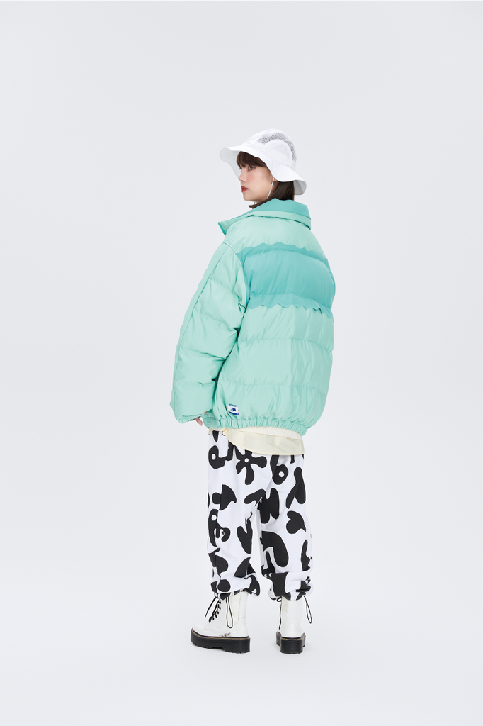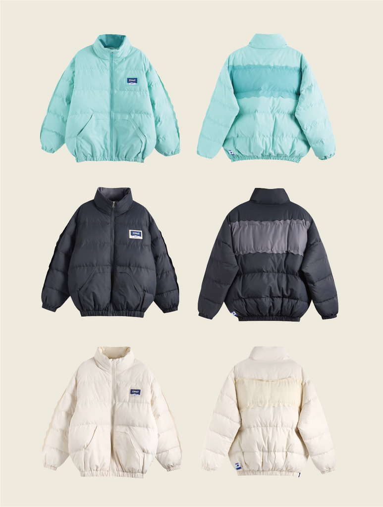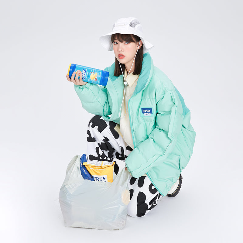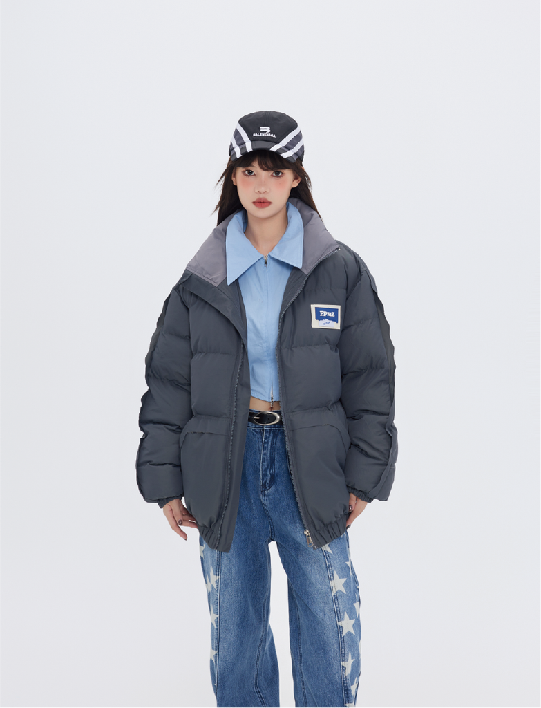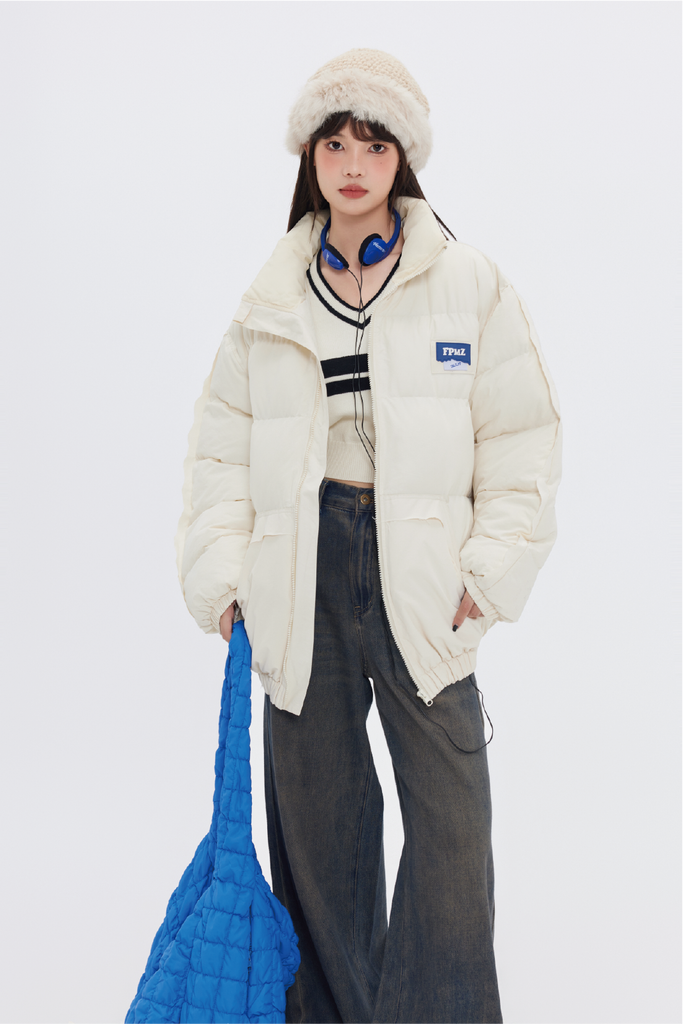 FPMZ cotton-blend puffer jacket, stand collar, zip closure, logo patch at chest and cuff, welt pockets, elasticized hem and cuffs, raw edge pattern at back, fully lined.