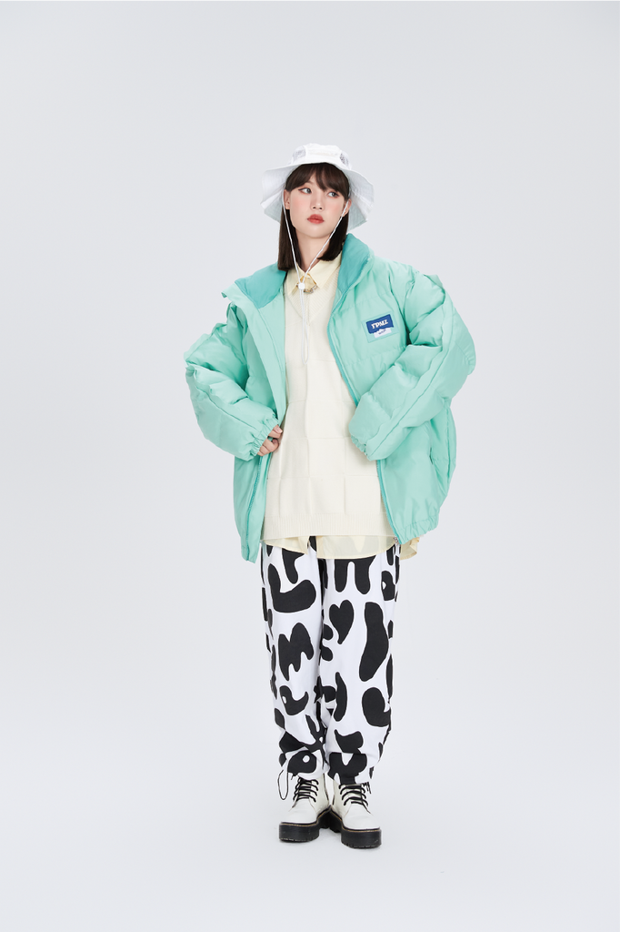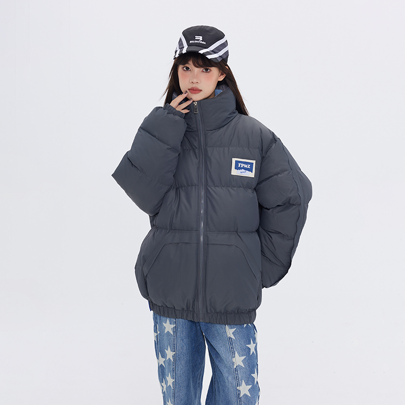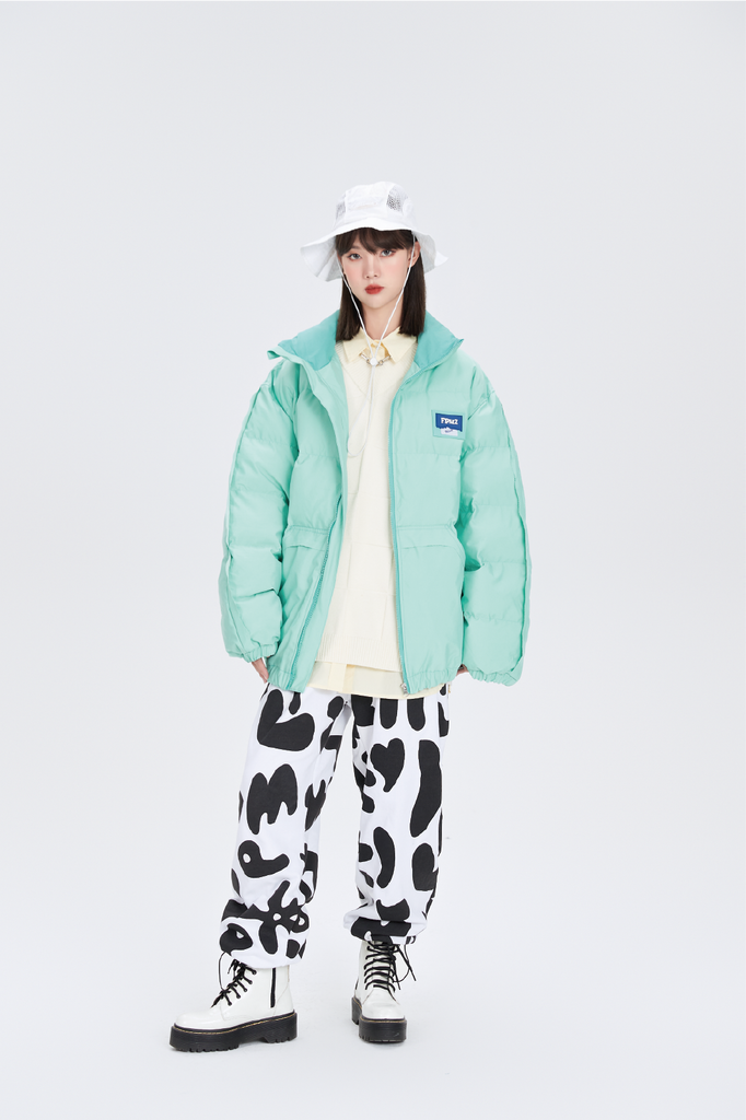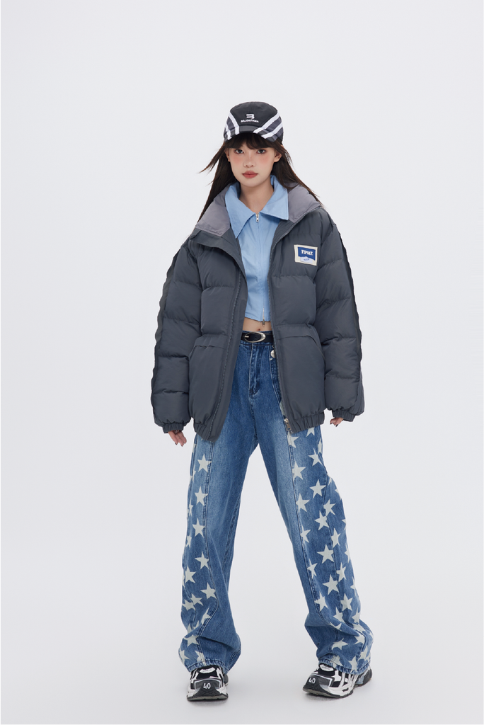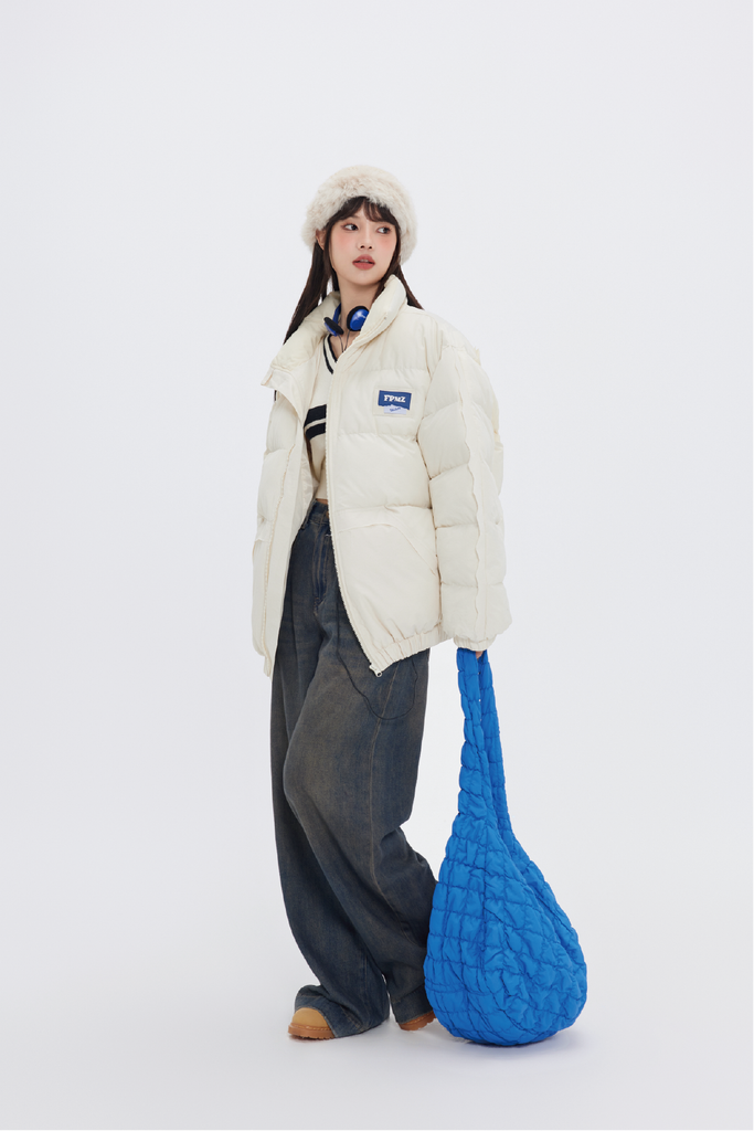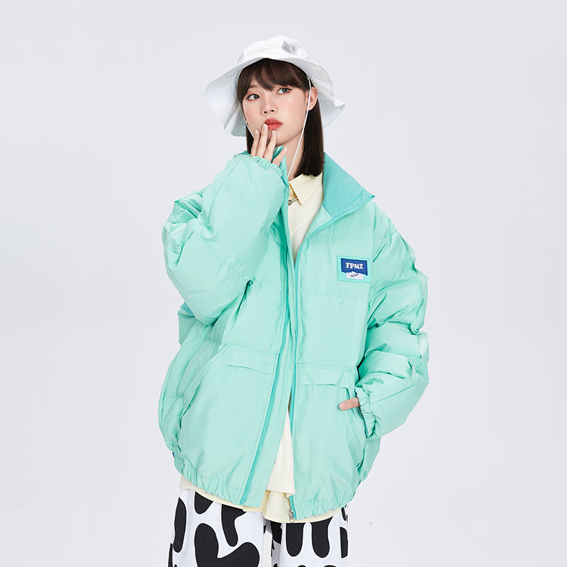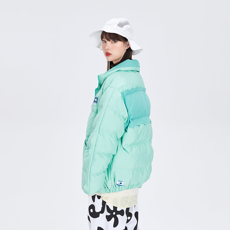 FPMZ cotton-blend puffer jacket, stand collar, zip closure, logo patch at chest and cuff, welt pockets, elasticized hem and cuffs, raw edge pattern at back, fully lined.