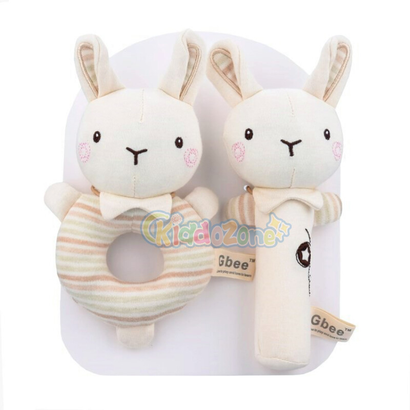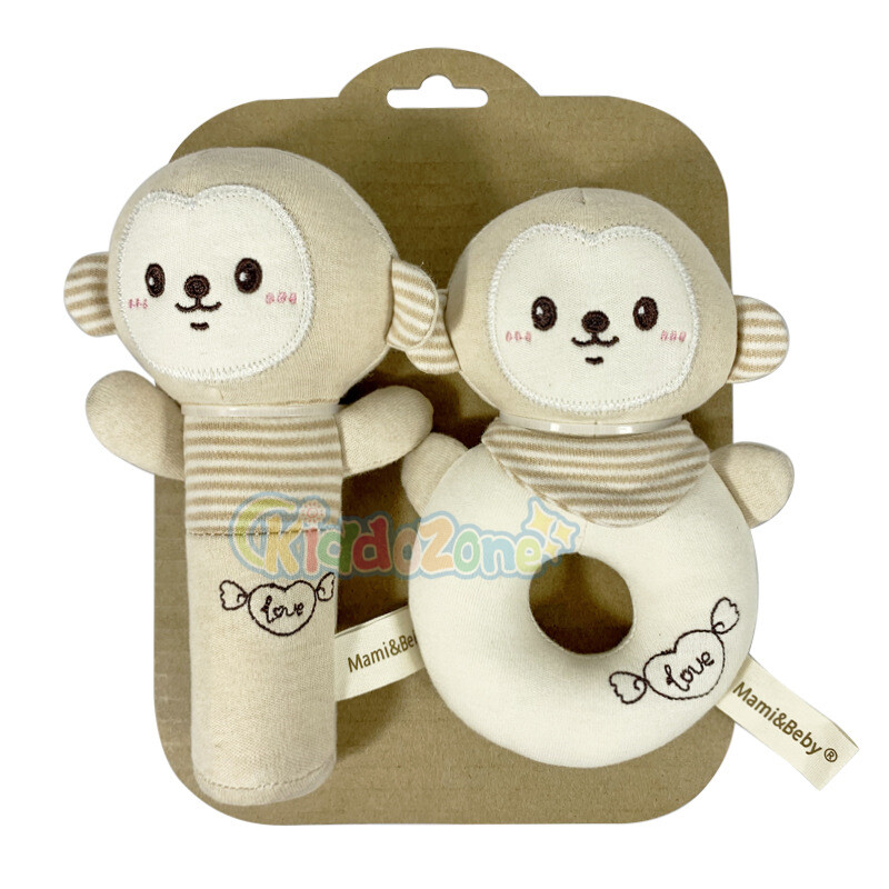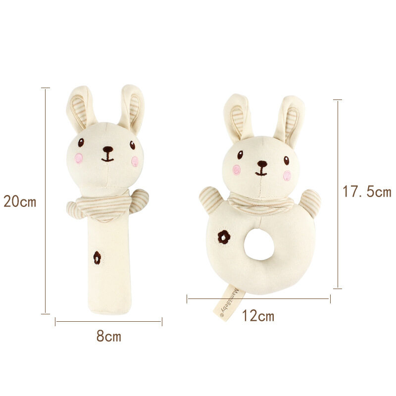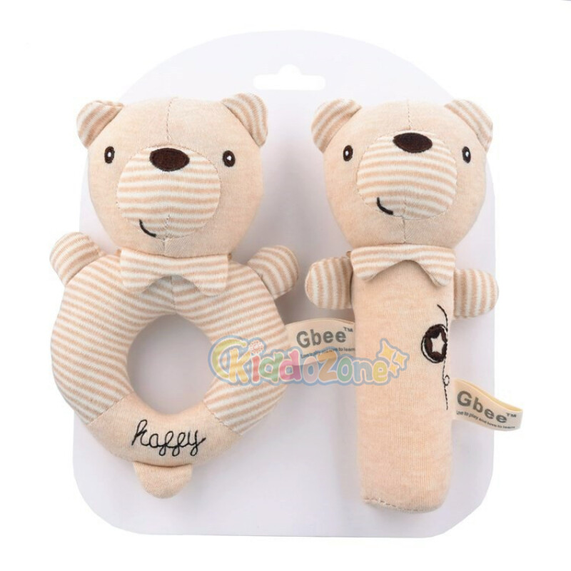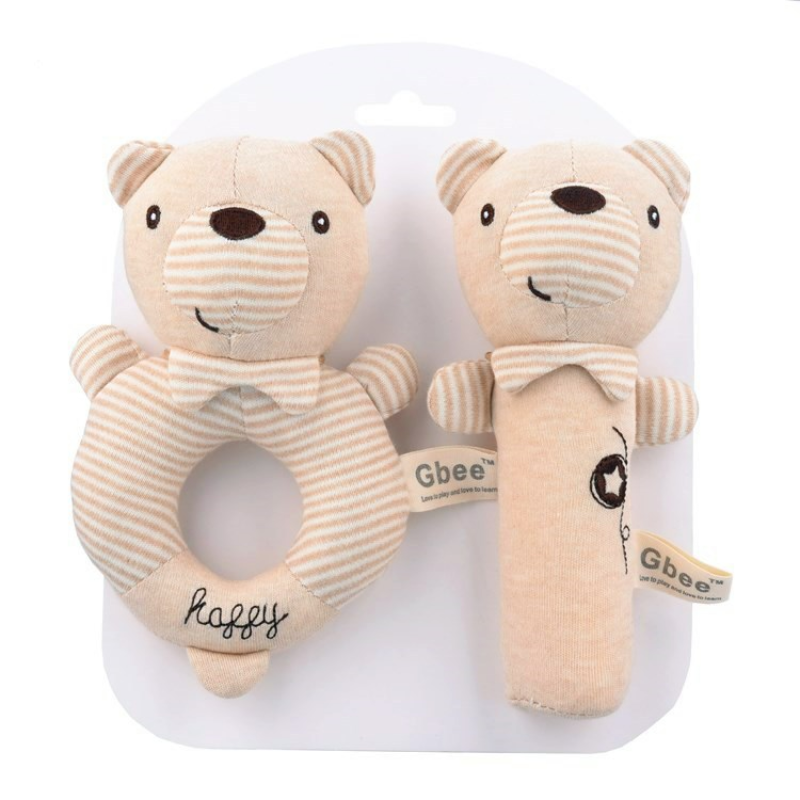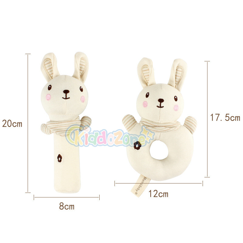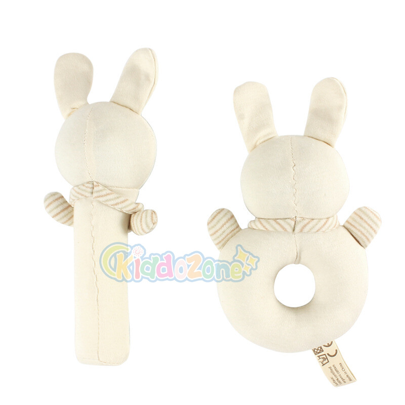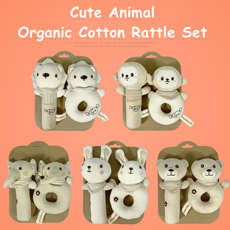 KiddoZone 2PCS Baby Rattle Kids Organic Cotton Soft Extrusion Rattle Cute Animal Appease Hand Rattle Plush Hand Holding Bell Toy BB Sound Educational Toys for 0-3 Year Boy Girls Baby