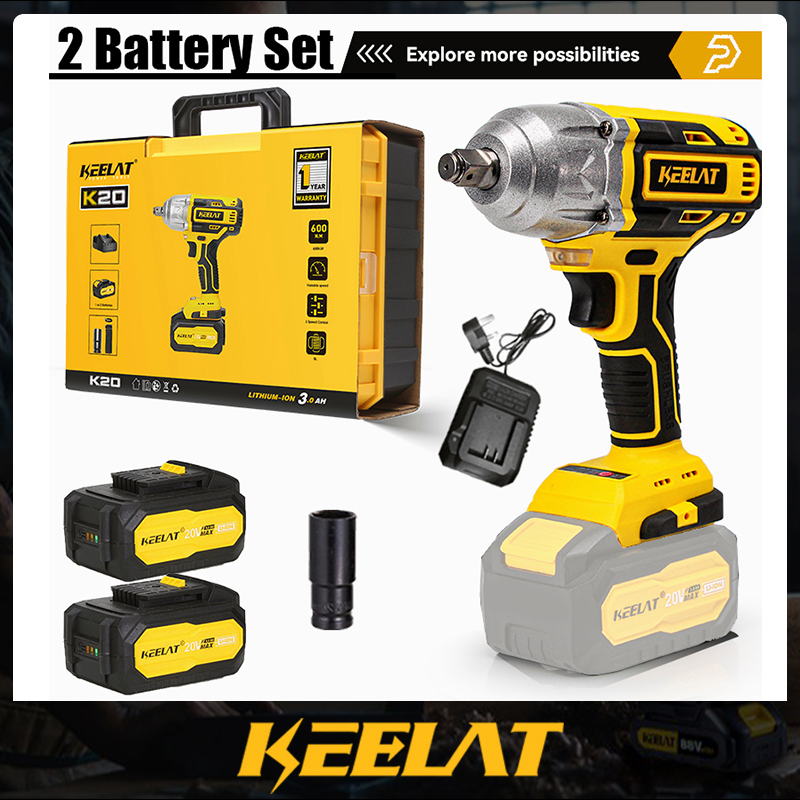 KEELAT KID006 600N.M Electric Impact Wrench Cordless High Torque 1/2"1/4" Screwdriver Drill Heavy Duty Professional Cordless Impact Driver Socket Power Tool Rechargeable 20V Battery