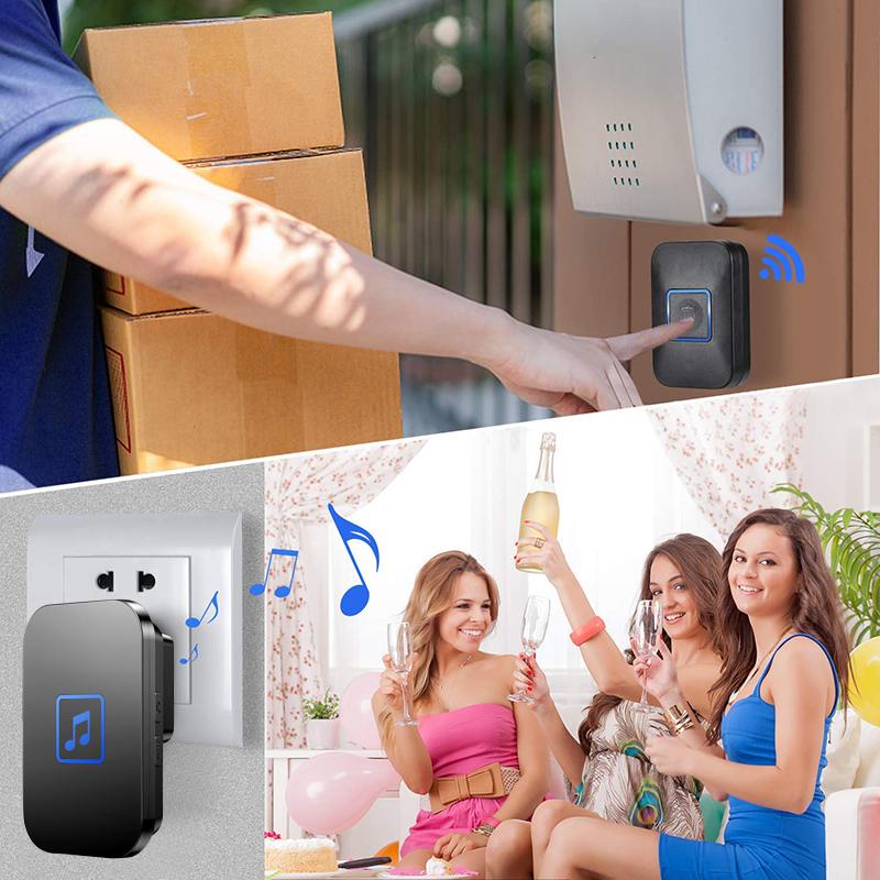 ?SG Fast Delivery?Cacazi Wireless Door Bell Latest 300M Button Waterproof Doorbell Waterproof Wireless Smart Doorbell Loceng Pintu Rumah UK Plug for Home Office 60 Tunes Door Chime Self Powered Door B