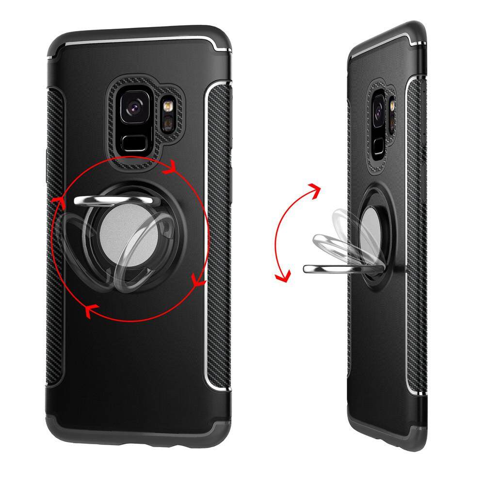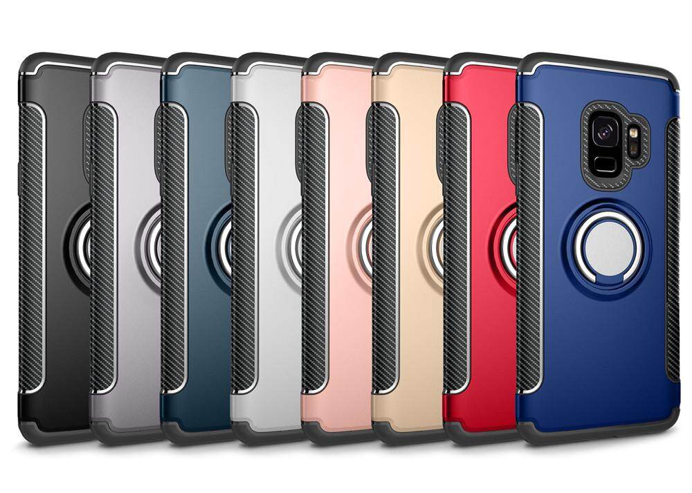 For Samsung Galaxy S9 / S9 Plus Phone Case, Luxury Magnetic Armor Silicone Cover Metal Ring Hard Casing