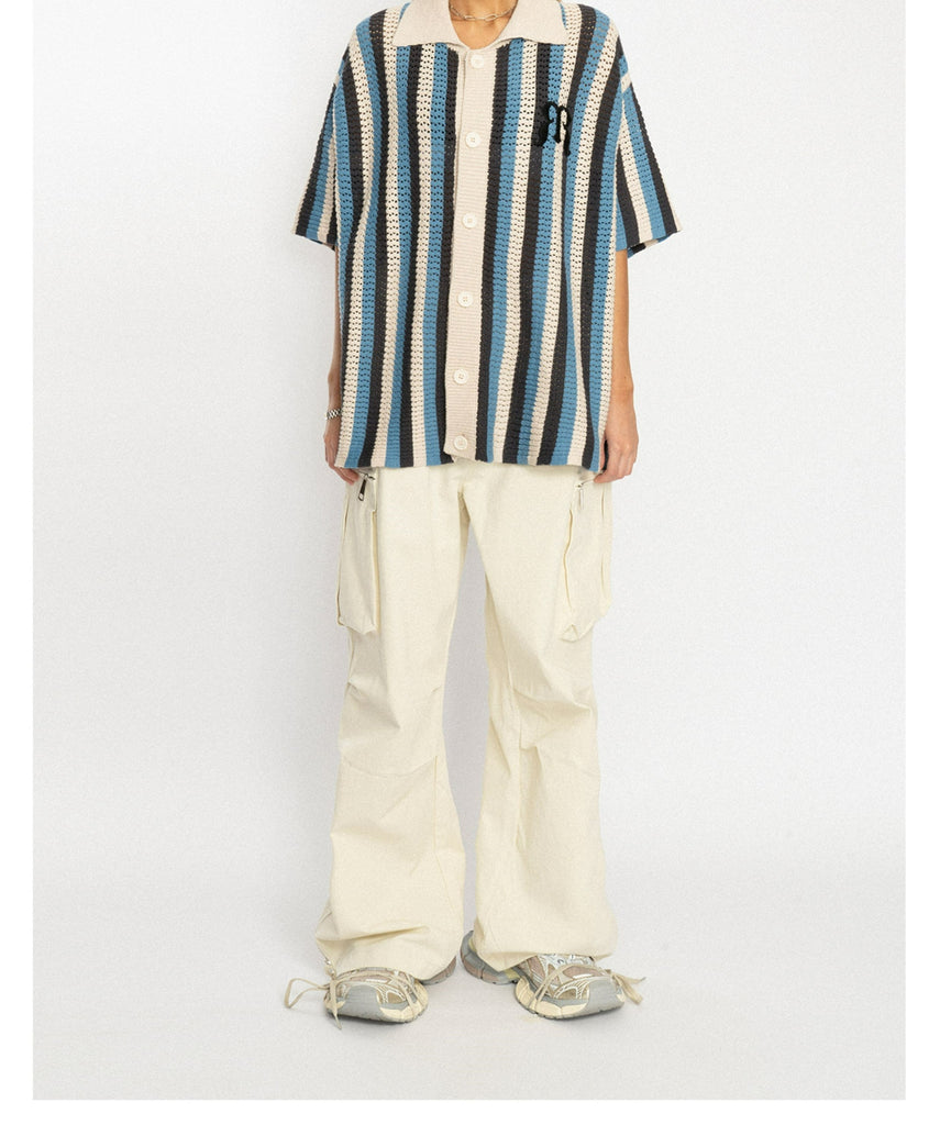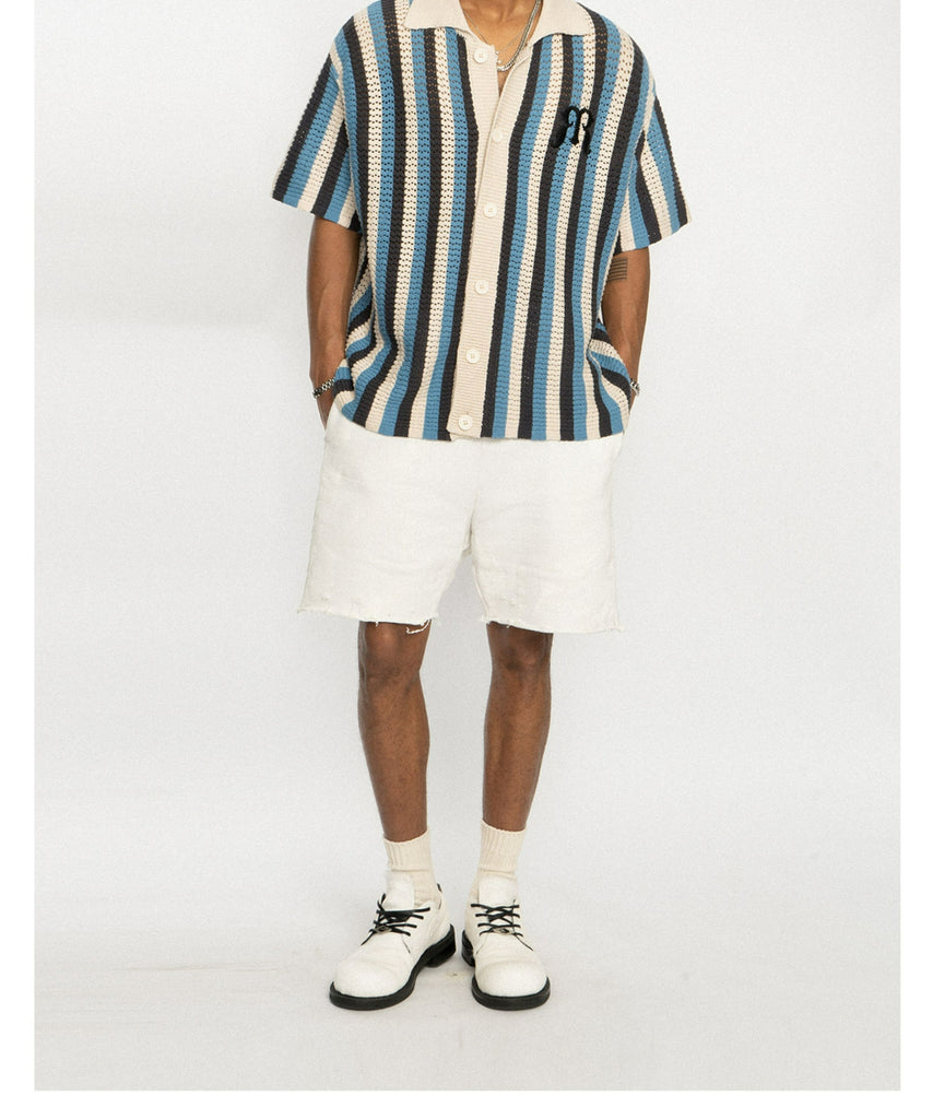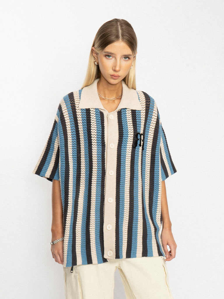 EMPTY REFERENCE Striped Crochet Collar Shirt